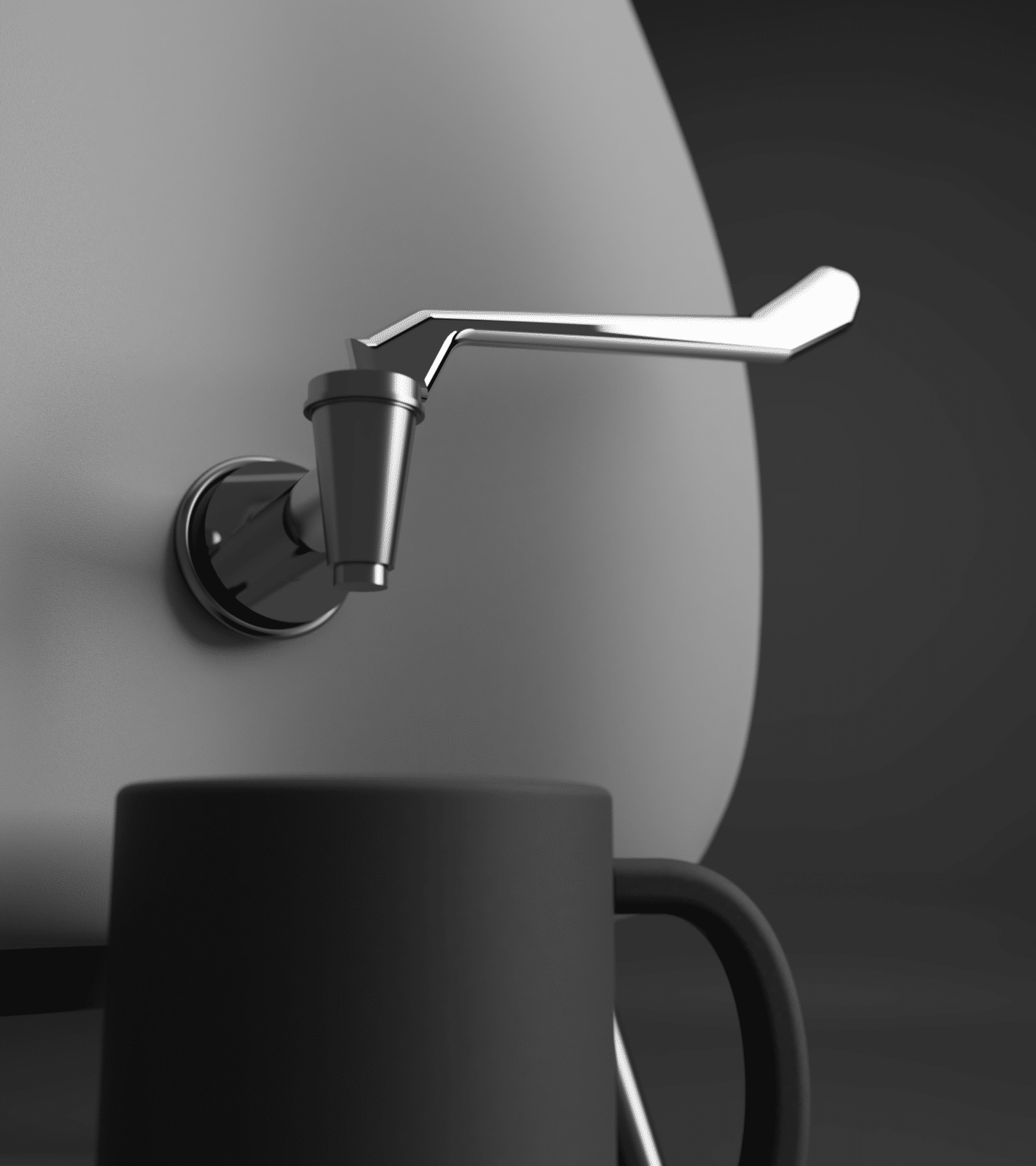 Raising the urn allows the user to slide the mug or alternative water vessel below the tap, erasing the need to place urns at the edge of tables and continuously lift the increasing weight of a filling pot.