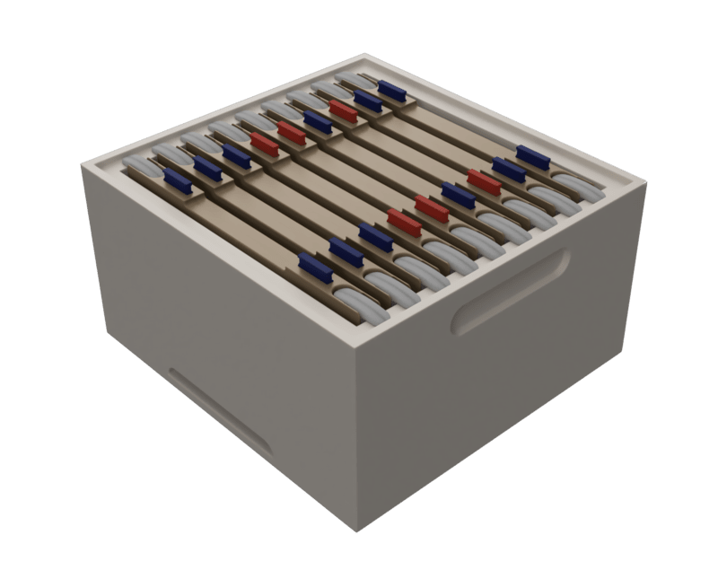 The current standard frame is essentially a wooden rectangle containing a beeswax foundation and it goes without saying it’s not especially ergonomically optimized for repetitive use. The inspection procedure involves manually detaching any buildup between the frame and hive, before lifting the frame by the lips designed to suspend the frame above the bottom of the hive. Due to the small surface area of these lips, the inspector must lift and manipulate the frame while aloft using a firm two- or three-finger grip, making each frame difficult and labour-intensive to inspect.